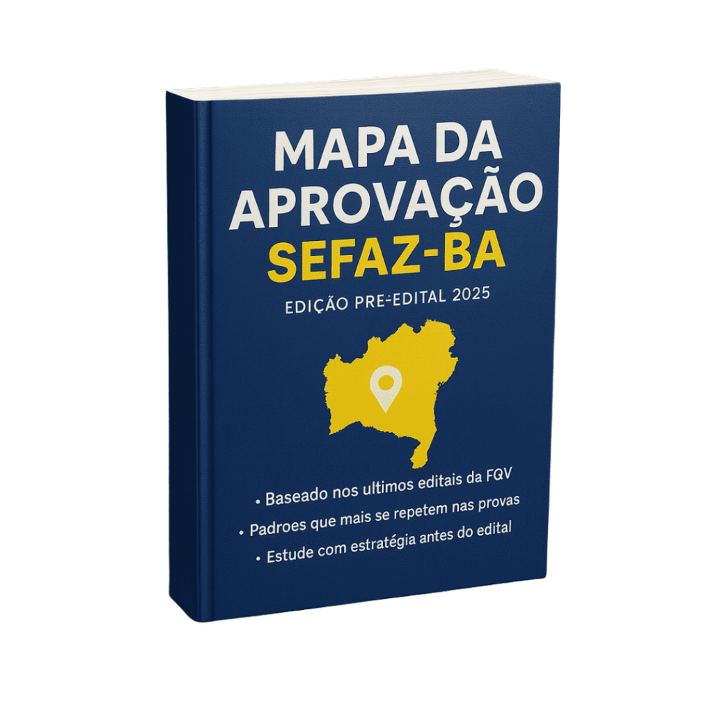 Pare de estudar às cegas e desperdiçar tempo com o que quase nunca cai. O Mapa da Aprovação Fiscal mostra exatamente onde concentrar seu foco — com estratégias específicas para a SEFAZ do seu estado.