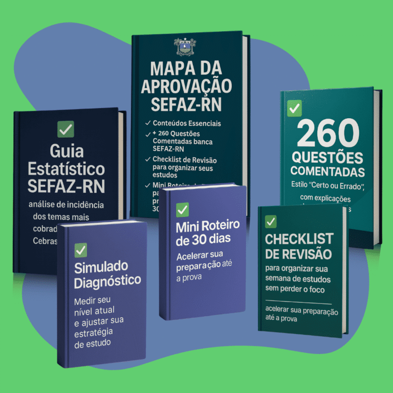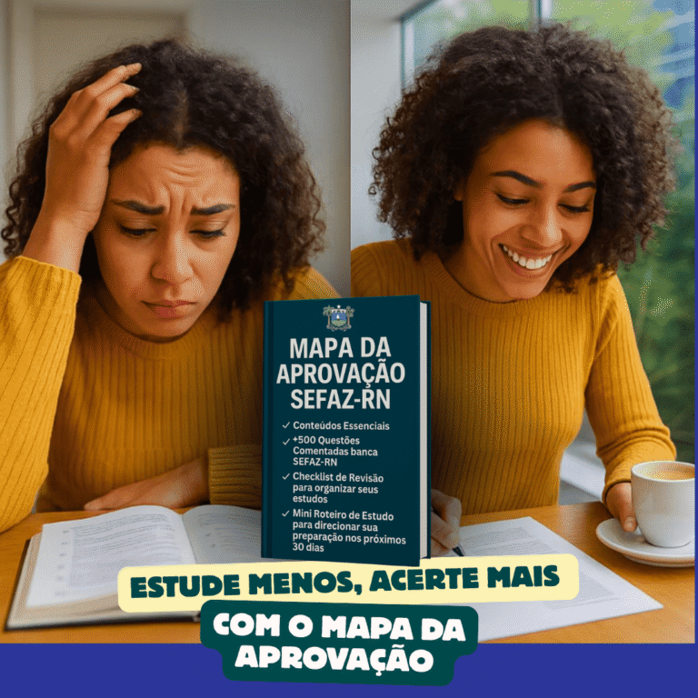 O Mapa da Aprovação SEFAZ-RN elimina esse risco com um plano de estudos enxuto e estratégico, construído a partir da análise da banca Cebraspe e orientado pelos temas com maior incidência nas provas anteriores.